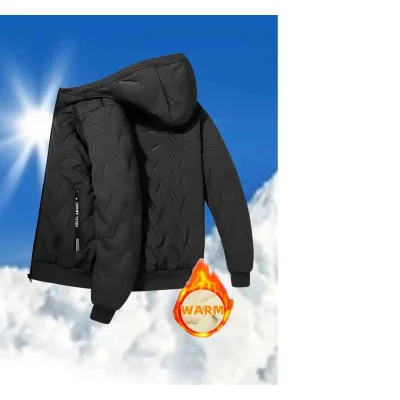 Pánská zimní bunda s kapucí a zapínáním na zip, vyrobená z odolného polyesteru s tlustou...