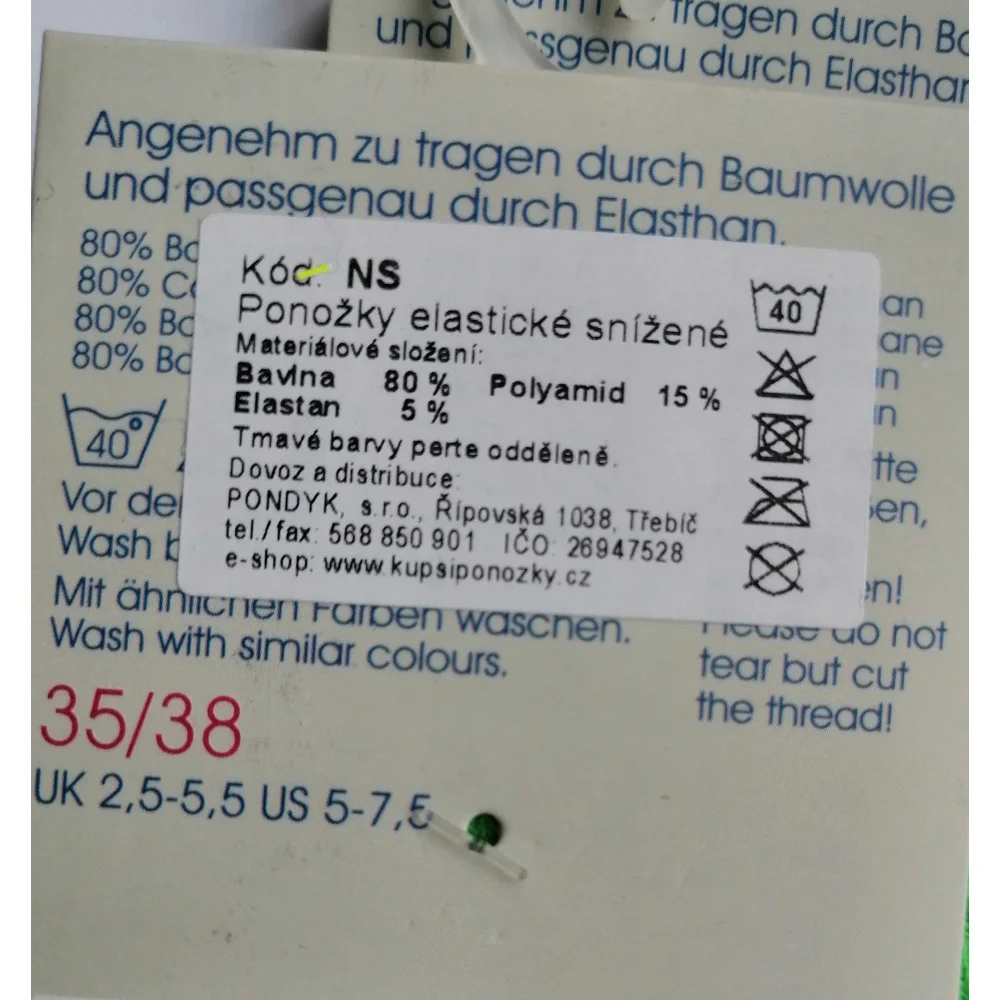 Naše dámské ponožky jsou vyrobeny z jemného a příjemného úpletu, který poskytuje maximální komfort po celý den. Materiálové složení zahrnuje 80% bavlny, 5% elastanu a 15% polyamidu, což zaručuje pružnost a odolnost ponožek.