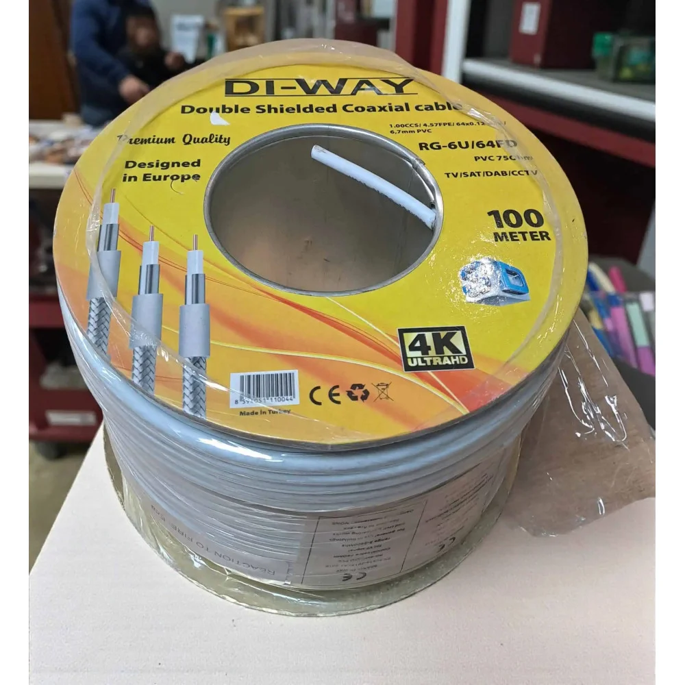 Koaxiální kabel DI-WAY RG-6U/64FD – 100 m / 6,7 mm / papírová cívka