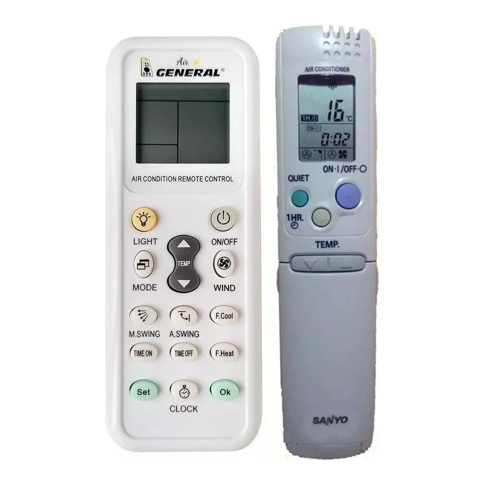 Ovladač je dodáván ve verzi dálkového ovladače General AIR (zobrazen vlevo), který byl vyroben speciálně pro klimatizace SANYO. Garantujeme Vám, že obdržíte ovladač, který plně nahradí Váš původní originální ovladač a zachovává všechny jeho funkce.