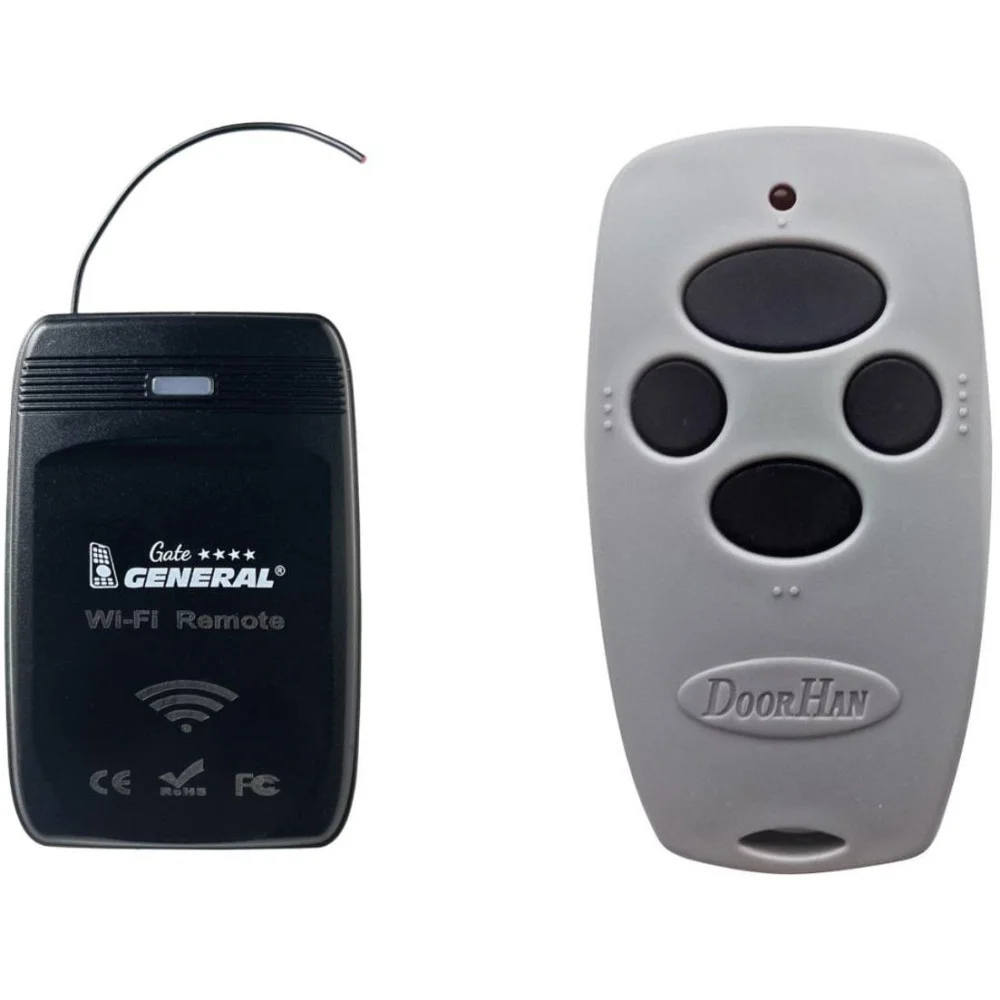 Dálkový ovladač **DOORHAN transmitter 4** je 100% náhradou za originální dálkový ovladač. Dodáváme ho naprogramovaný na pozici 1 a 2, takže není potřeba provádět žádné duplikace – stačí pouze zaregistrovat ovladač do paměti řídící jednotky! Tento ovladač je kompatibilní s modely **DOORHAN**: **1200**, **750**, **FAST-1200**, **FAST-750**, **FAST1200**, **FAST750**, **SECTIONAL 1200**, **SECTIONAL 500**, **SECTIONAL 800 PRO**, **SHAFT60**, **SLIDING800**. (Nemusí zde být uvedeny úplně všechny kompatibilní modely. Pokud máte pochybnosti, neváhejte se na nás obrátit prostřednictvím e-mailu nebo telefonu, rádi vám ověříme kompatibilitu s vaším zařízením.) Ovladač je dodáván ve verzi značkového dálkového ovladače **General WiFi GATE** (**ZOBRAZEN VLEVO**).