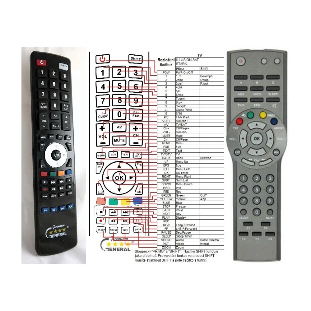 Náhradní dálkový ovladač GOLDEN INTERSTAR DSR-9000 (DSR9000). Dálkový ovladač je určen pro tyto...