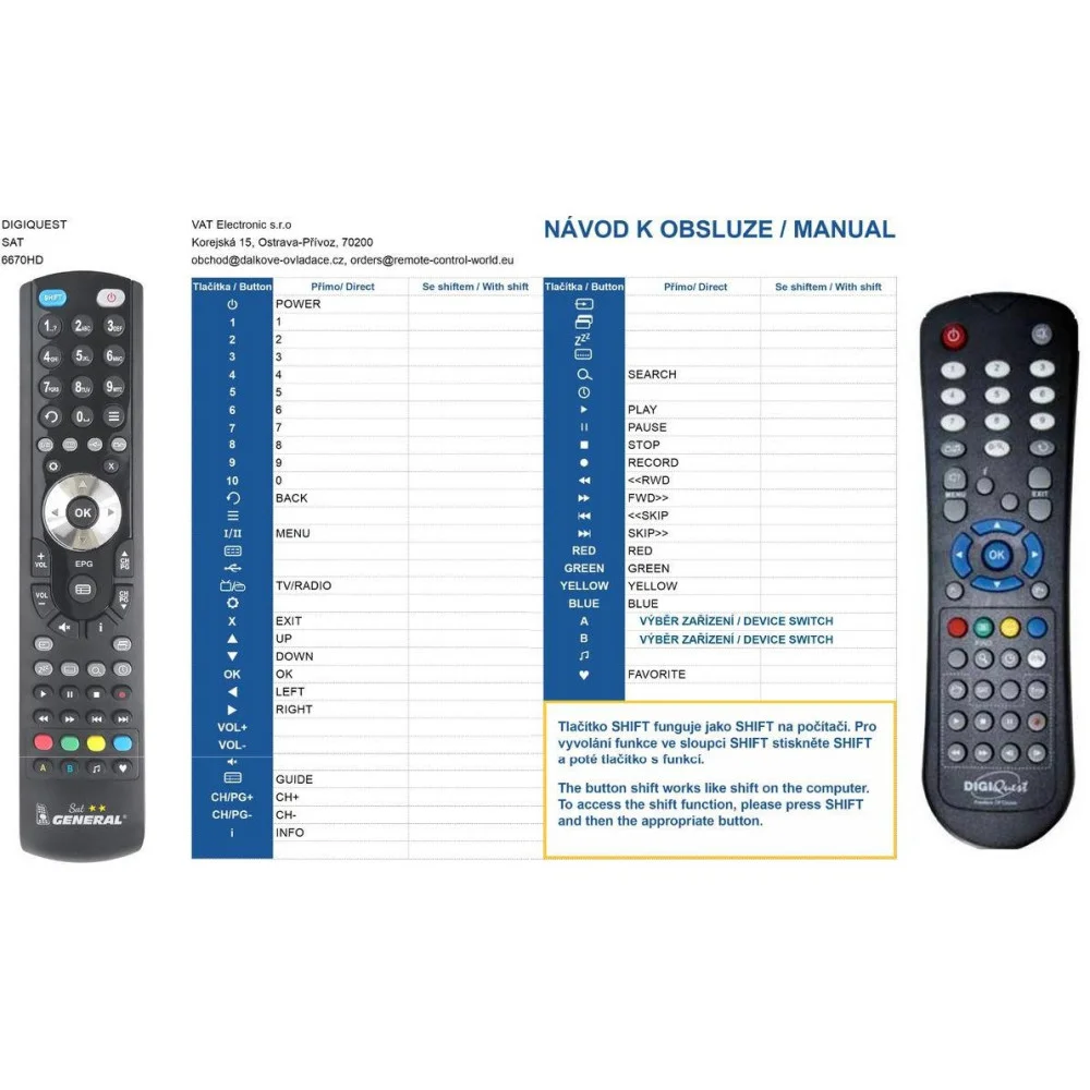 Dálkový ovladač DIGITALBOX HD5 Light duplikát 1:1 originálního dálkového ovladače. Dálkový...