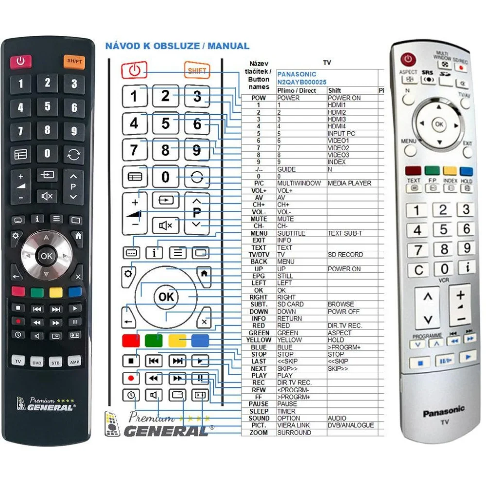 Náhradní dálkový ovladač PANASONIC 30089237, RC48125.Dálkový ovladač je určen pro tyto modely...