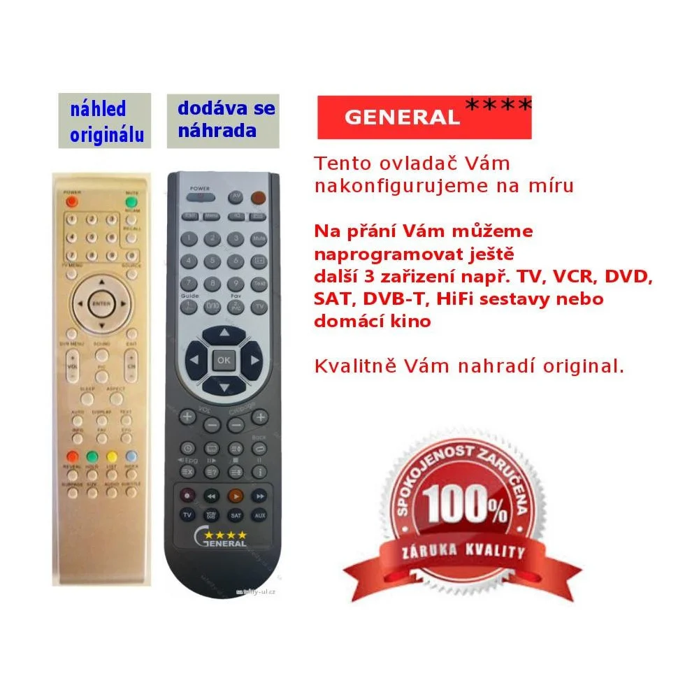 Dálkový ovladač General je navržen tak, aby měl naprosto všechny funkce jako originální dálkový ovladač. Ovladač se snadno používá a nevyžaduje žádné nastavování ani kódy. Stačí vložit baterie a ihned funguje se všemi výše uvedenými modely. Popisky tlačítek jsou vysoce odolné a nelze je snadno seškrábat ani hrubým použitím.