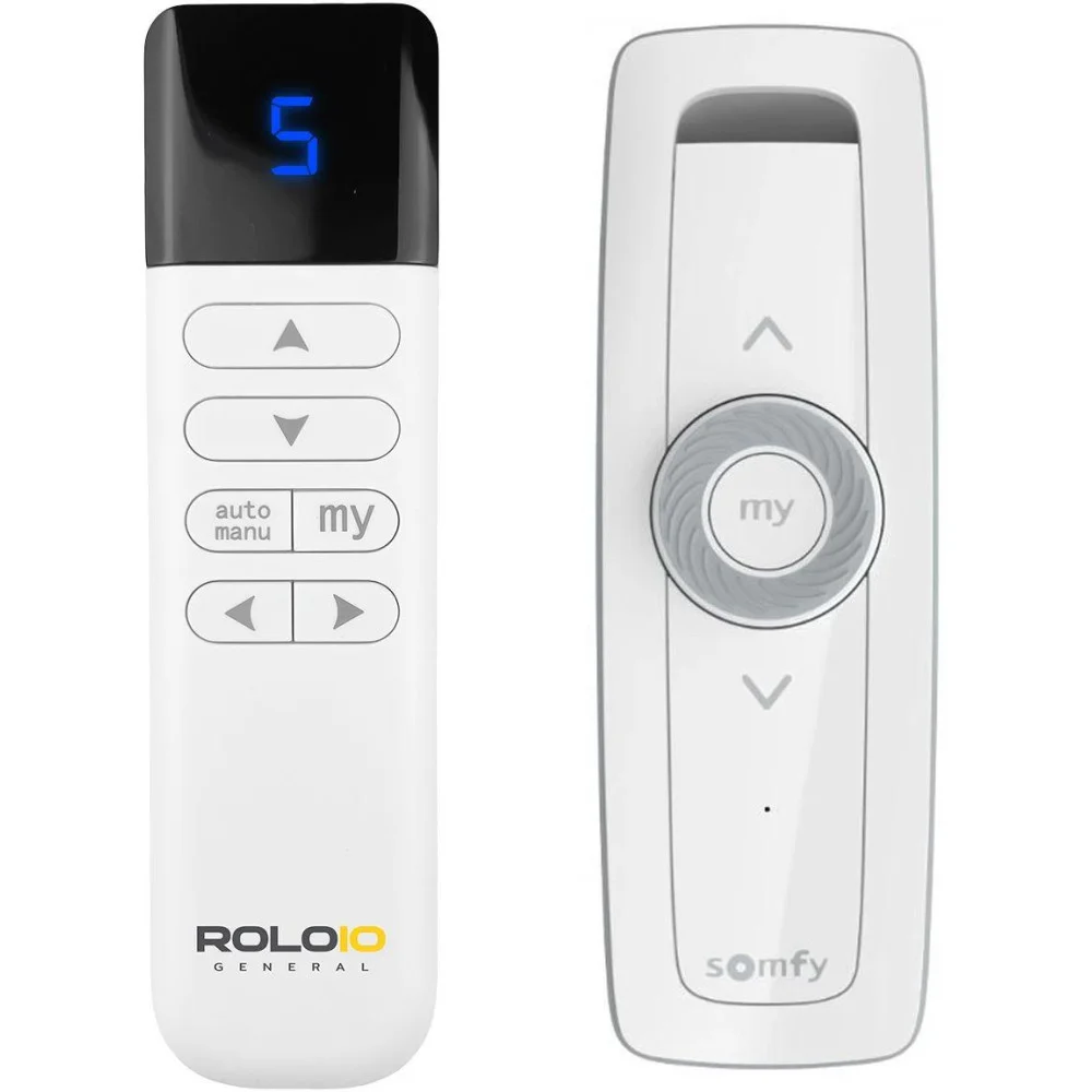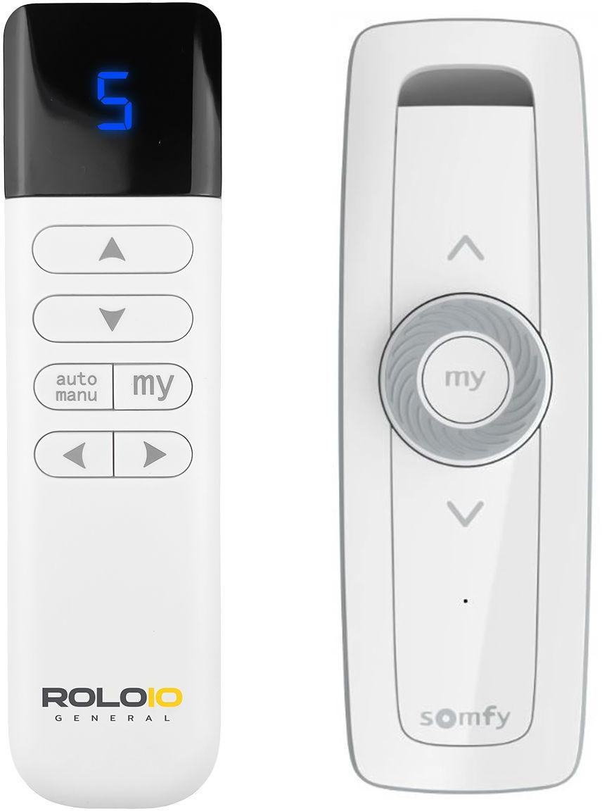Dálkový ovladač je vyroben z kombinace matného bílého a lesklého černého plastu, díky čemuž působí moderně a elegantně. Plně nahrazuje jakýkoliv SOMFY ovladač pracující na frekvenci 868 MHz (io technologie) a umožňuje ovládání všech základních funkcí, jako je pohyb nahoru, dolů, stop a nastavení sklonu lamel. Disponuje 5 kanály, takže lze ovládat více motorů nebo skupin zařízení z jednoho místa. Párování je velmi jednoduché, pokud máte k dispozici již spárovaný ovladač. Rozměry balení: 151 × 43 × 20 mm.