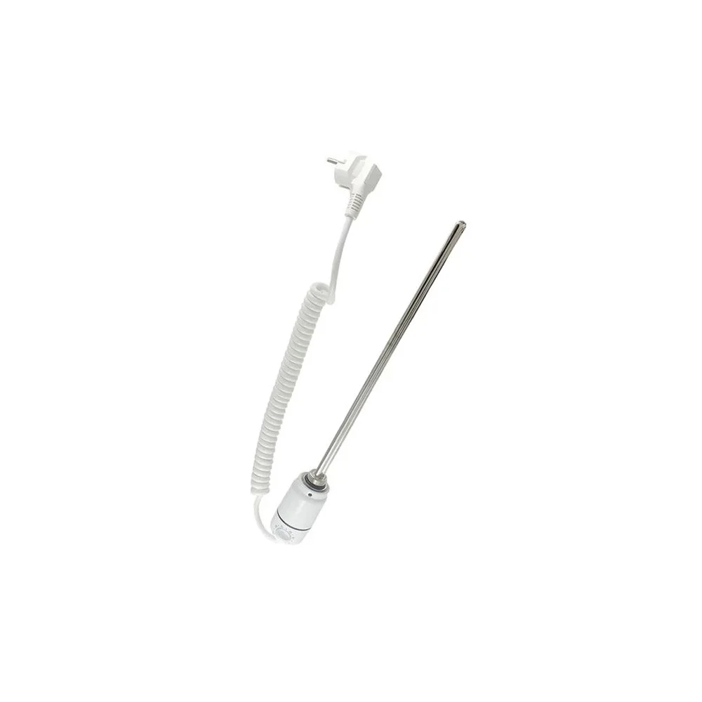 Elektrická topná tyč s termostatem pro žebříkové radiátory Výhodou elektrických topných tyčí je možnost vyhřívat otopné těleso v zimě vodou z kotle a v létě elektrickou topnou tyčí. Elektrickou topnou tyč je také možné zapojit bez nutnosti přívodu topných zuř z kotle (pouze topný žebřík a topná elektrická tyč). Konstrukční návrh topných těles zajišťuje maximální účinnost tepla mezi vlastním radiátorem a prostředím ve kterém je umístěn. Vysoká účinnost, jednoduchá a rychlá montáž jsou hlavními výhodami. Všechny varianty tyčí jsou ihned dostupné k odběru. Technické parametry: - barevné provedení: bílá nebo chrom - připojovací závit: 1/2" - stupeň ochrany: IP65 - max. délka kabelu (po natažení): 1,5 m - max. provozní tlak: 10 bar - nastavení teploty: 5 až 70 °C