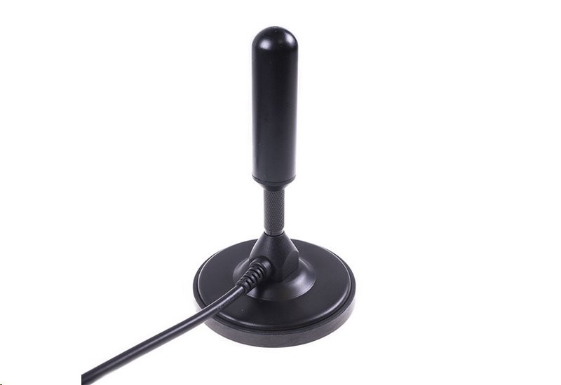 Televizní pokojová anténa s magnetickou základnou vám zajistí kvalitní příjem digitálního televizního a rádiového signálu DVB-T2 v bytě, domě i na chalupě. Je vhodná pro místa se silným signálem. Výkonná pokojová anténa za přijatelnou cenu tak může vylepšit televizní obraz na vaší TV. Rozsah frekvencí je 470-864 MHz.
