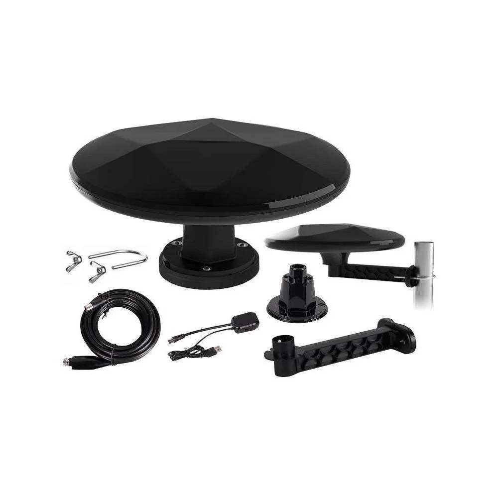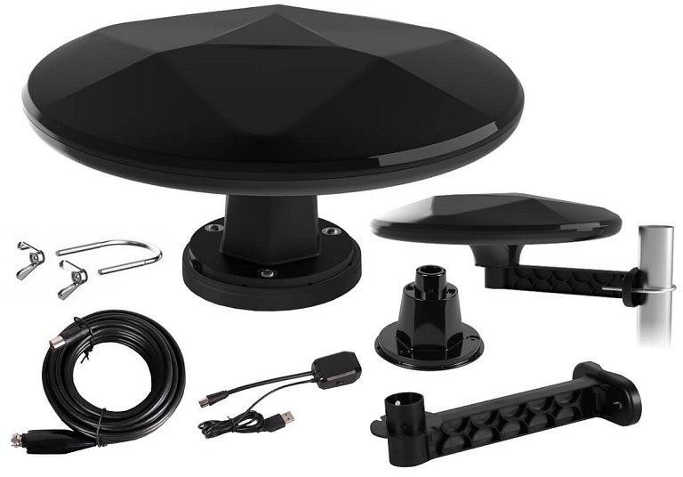 Anténa MISTRAL MI-ANT07 může být napájena 5V DC přímo z RF zdířky televizoru nebo Set Top Boxu (pokud tuto funkci podporuje) nebo z USB portu televizoru. Tím eliminujete nepotřebné kabely v kabině, bez nutnosti dodatečného napájení ze zásuvky 12 V. Součástí dodávky je 6 metrů koaxiálního kabelu s F konektorem a IEC pro snadné připojení antény na libovolném místě.