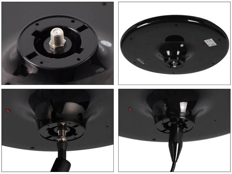 Dvě vestavěné LED diody - jedna na samotné anténě, druhá na oddělovači/konektoru - vám umožní rychle zjistit, zda je anténa správně připojena a napájena. Pokud LED diody svítí, můžete si užívat příjem vašich oblíbených programů.
