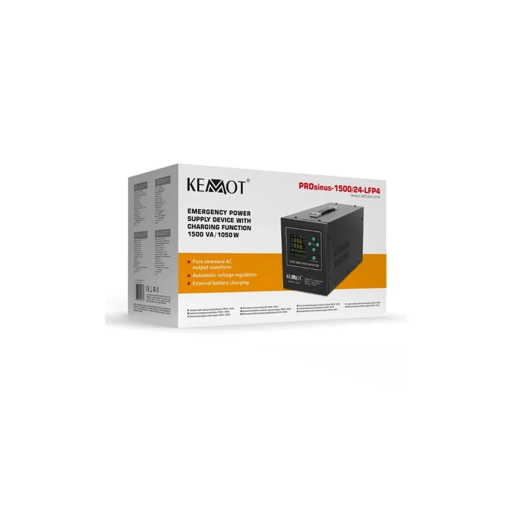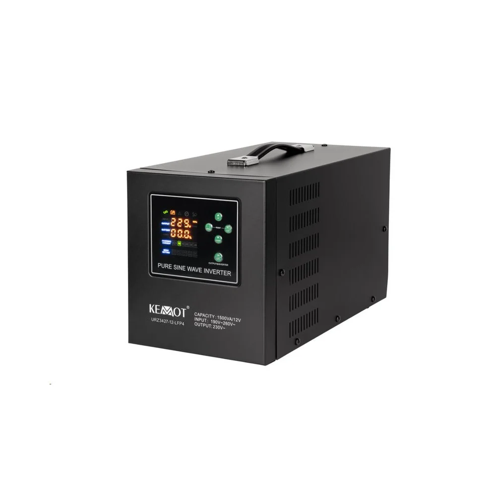 Záložní zdroj KEMOT PROsinus 1500 URZ3427‑12‑LFP4 je moderní měnič s čistou sinusovkou a výkonem 1050 W, určený pro bezpečné napájení citlivých zařízení při výpadku elektřiny. Podporuje 12V LiFePO₄ baterie, které zajišťují dlouhou životnost, stabilní provoz a rychlé dobíjení. Krátká přepínací doba udrží v chodu kotle, čerpadla, servery, zabezpečovací systémy, elektroniku i běžné domácí spotřebiče. Zařízení nabízí vysokou účinnost, tichý chod, přehledné ovládání a inteligentní ochrany proti přetížení, zkratu, přehřátí i hlubokému vybití.
