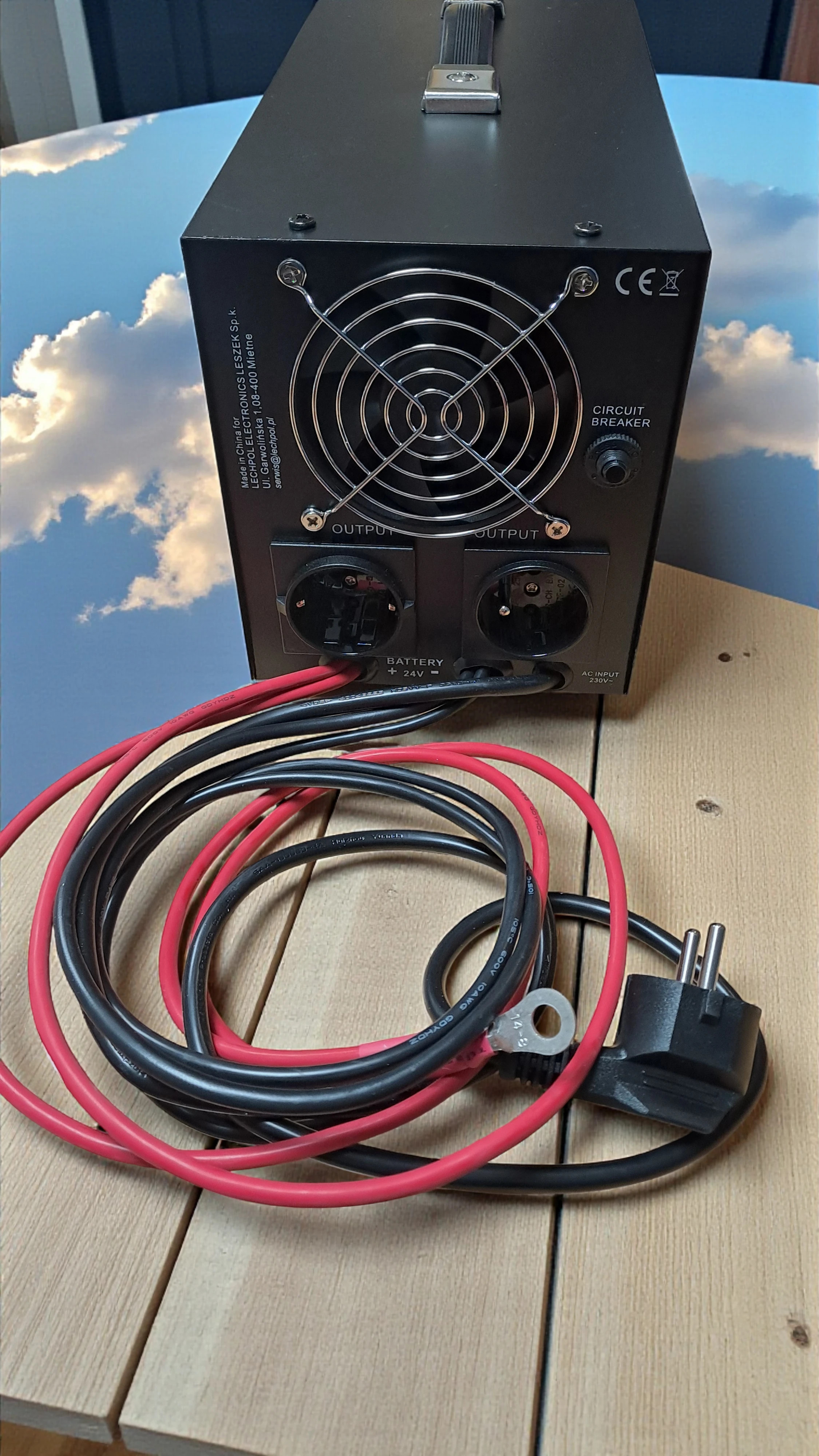 1) Jako nouzový napájecí zdroj s funkcí nabíjení převádí 12V DC dodávané z externí baterie do elektrické sítě 230V AC a dobíjí externí baterii.
