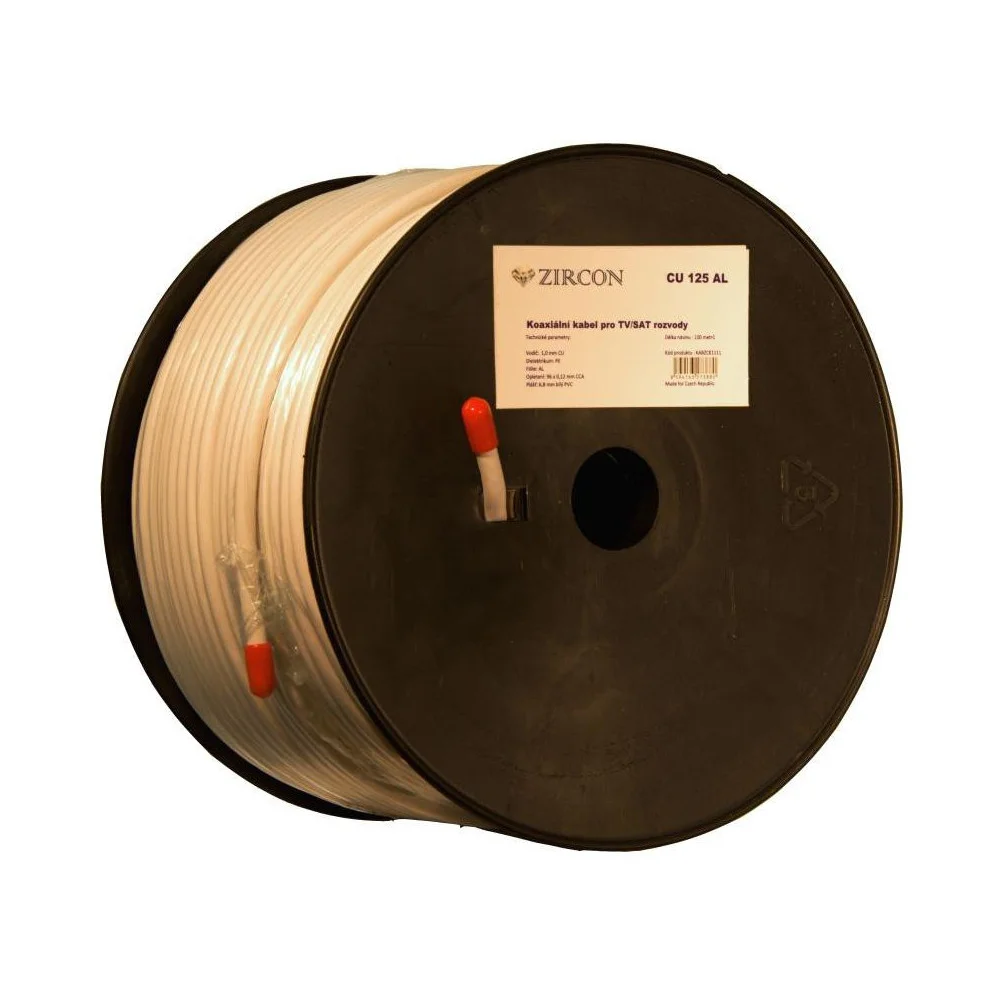 Kvalitní koaxiální kabel pro vnitřní použití, **Zircon CCS 125 AL**, nabízí výborný poměr cena - kvalita. S impedancí 75 Ohm a vnitřním vodičem vyrobeným z materiálu **CCS** o průměru 0,8 mm představuje ideální volbu pro široké spektrum aplikací. Kabel je konstruován s pěnovým dielektrikem, a jeho stínění je zajištěno hliníkovou folií a opletením 72x0,12 mm Al. Tento produkt je **dodává se** v balení po 100 m.