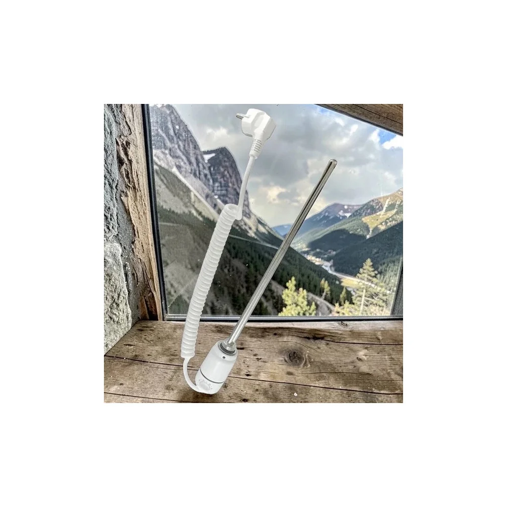 Elektrická vykurovacia tyč s termostatom pre rebríkové radiátory Výhodou elektrických vykurovacích tyčí je možnosť ohrievať vykurovacie teleso v zime vodou z kotla a v lete elektrickou vykurovacou tyčou. Elektrickú vykurovaciu tyč je možné pripojiť aj bez potreby prívodu vykurovacích rúr z kotla (iba vykurovací rebrík a elektrická vykurovacia tyč). Konštrukcia vykurovacích telies zabezpečuje maximálnu tepelnú účinnosť medzi samotným radiátorom a prostredím, v ktorom je umiestnený. Hlavnými výhodami sú vysoká účinnosť, jednoduchá a rýchla inštalácia. Všetky varianty tyčí sú okamžite k dispozícii na zakúpenie. Technické parametre: - farba: biela alebo chróm - pripojovací závit: 1/2" - stupeň krytia: IP65 - max. dĺžka kábla (po natiahnutí): 1,5 m -