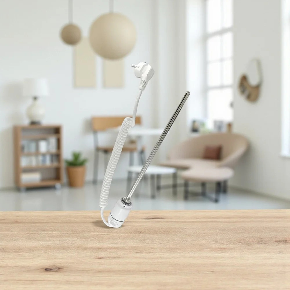 Elektrická topná tyč GT900 s integrovaným termostatem je ideálním řešením pro vytápění koupelnových radiátorů a sušáků na ručníky. Umožňuje pohodlné nastavení požadované teploty a díky automatické regulaci se sama zapíná a vypíná podle aktuální potřeby, což zajišťuje úsporný a bezpečný provoz. Snadno se instaluje do radiátorů se standardním závitem a její odolná konstrukce zaručuje dlouhou životnost. Perfektní volba pro vytápění mimo topnou sezónu i rychlé zahřátí koupelny.